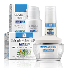 Η ανεπιθύμητη μελάγχρωση μπορεί να είναι αποτέλεσμα εγκυμοσύνης, γήρανσης ή παρατεταμένης έκθεσης στον ήλιο. Όποια και αν είναι η αιτία, η σειρά καλλυντικών Bodi Beauty's Skin Whitening (Bille-BA) παρέχει ολοκληρωμένη φροντίδα για το πρόσωπο και το λαιμό και αποτελεσματική λύση κατά των φακίδων, των κηλίδων, των εγκαυμάτων και των σημείων χρωστικής γήρανσης. Η σειρά καλλυντικών Skin Whitening (Bille-BA) περιέχει έναν ισχυρό συνδυασμό φυτικών εκχυλισμάτων και άλφα-arbutin PENTAPHARM - Ελβετικό σύμπλεγμα λεύκανσης (μη ερεθιστικός παράγοντας αποχρωματισμού). Σε συνδυασμό αυτά τα δραστικά συστατικά μειώνουν ομοιόμορφα και σταδιακά τη μελάγχρωση, λεύκανση και καθαρισμό του δέρματος του προσώπου.