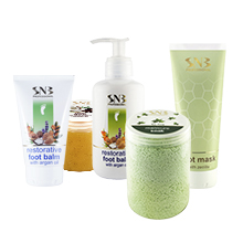 Η σειρά καλλυντικών της SNB για επαγγελματική φροντίδα και θεραπεία των ποδιών παρέχει μια ολοκληρωμένη φροντίδα για ραγισμένα τακούνια, επιδερμίδες και ξηρό δέρμα. Όλα τα προϊόντα της σειράς καλλυντικών προορίζονται για απαλότητα, ενυδάτωση και λείανση του δέρματος των ποδιών και για την αποτελεσματική εξάλειψη των πορωδών περιοχών και την απολέπιση του νεκρού δέρματος.