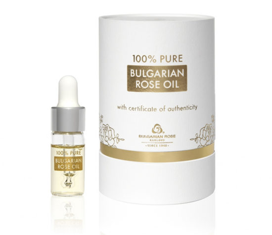 Το 100% καθαρό φυσικό λάδι τριαντάφυλλου της Bulgarian Rose Karlovo διατίθεται σε μια νέα πολυτελή συσκευασία 3 ml. και έχει καταγράψει όλες τις ισχυρές αντιγηραντικές, ενυδατικές και αντισηπτικές ιδιότητες του ελαίου rosa damascena. Ηρεμεί το νευρικό σύστημα και είναι ιδανικό για χρήση σε λάμπες αρώματος και για αρωματοθεραπεία. Έχει ένα μαγευτικό πλούσιο άρωμα που καταπραΰνει και εναρμονίζει τις αισθήσεις. Είναι κατάλληλο να προσθέσετε στα καλλυντικά προϊόντα και ακόμη και να το πάρετε εσωτερικά – απλώς προσθέστε μια σταγόνα στο ποτήρι νερό ή τσάι το πρωί.