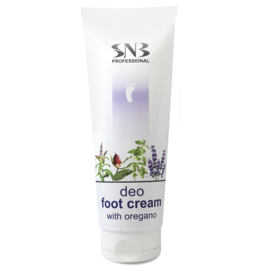 Η αποσμητική κρέμα ποδιών με λάδι ρίγανης από την επαγγελματική σειρά καλλυντικών θεραπείας ποδιών από την SNB ενυδατώνει και προστατεύει το δέρμα των ποδιών. Ο συνδυασμός ελαίων ρίγανης και πορτοκαλιού αποτρέπει τις δερματικές μολύνσεις, ενώ τα έλαια λεβάντας, μέντας, ευκαλύπτου και βασιλικού αποσμητικά και φρεσκώνουν το δέρμα των ποδιών. Η κρέμα έχει αντιμυκητιασικές ιδιότητες.