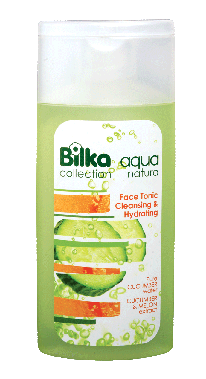 Το ενυδατικό και καθαριστικό τονωτικό προσώπου με εκχύλισμα αγγουριού και πεπονιού Το Bilka Aqua Natura είναι μια νέα γενιά τονωτικού προσώπου εμπλουτισμένο με φυσικό νερό αγγουριού. Απομακρύνει τις ακαθαρσίες και ενυδατώνει σε βάθος. Τα πρόσθετα μικροστοιχεία, τα αμινοξέα, οι βιταμίνες και η αντιβακτηριακή ουσία δεν ερεθίζουν και δεν αφυδατώνουν το δέρμα. Απολυμαίνει και τονώνει το δέρμα του προσώπου και δίνει φρεσκάδα μακράς διαρκείας όλη την ημέρα. Το απαλό καθαριστικό προσώπου είναι ένα τέλειο φινίρισμα για τη ρουτίνα καθαρισμού σας. Μετά τη χρήση, η επιδερμίδα είναι λεία, το δέρμα είναι φρέσκο και γεμίζει με ενέργεια.