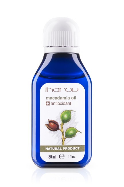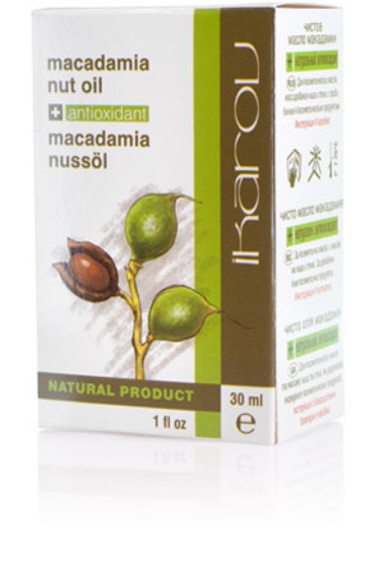 Το φυσικό έλαιο macadamia της Ikarov μειώνει τους ερεθισμούς του δέρματος, ενυδατώνει, θρέφει και καταπραΰνει το ευαίσθητο δέρμα του προσώπου και του σώματος. Ψυχρής πίεσης από τους καρπούς της καρυδιάς της Αυστραλίας. Ανήκει στα λάδια με την πιο παρόμοια με τη σύνθεση ανθρώπινου σμήγματος. Το λάδι Macadamia απορροφάται γρήγορα από το δέρμα χωρίς να αφήνει μια δυσάρεστη λιπαρή μεμβράνη. Μπορεί να χρησιμοποιηθεί σε πρόσωπο, σώμα και μαλλιά. Δεν ερεθίζει το δέρμα. Μειώνει τους ερεθισμούς του δέρματος, τον κνησμό και την ερυθρότητα, καταπραΰνει το ευαίσθητο δέρμα.