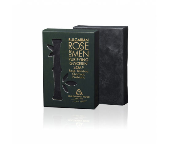 Το σαπούνι γλυκερίνης βαθιάς καθαρισμού Bulgarian Rose για Άντρα περιέχει ροδόνερο και κάρβουνο από μπαμπού. Το αποτοξινωτικό αποτέλεσμα του σαπουνιού το καθιστά ιδανικό για χρήση σε λιπαρά τριχωτά της κεφαλής ή λιπαρό πρόσωπο και σώμα. Το πρόσθετο συστατικό τριαντάφυλλου στο σαπούνι αφήνει ένα ευχάριστο, ανασταλτικό άρωμα μετά τη χρήση.
