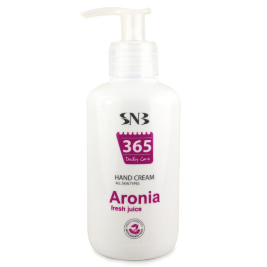 Η λεπτή, φρουτώδης κρέμα χεριών της SNB με χυμό αρονίας είναι κατάλληλη για θρέψη και απαλότητα του δέρματος. Δημιουργεί μια προστατευτική μεμβράνη στο δέρμα και κρατά τις επιβλαβείς επιπτώσεις του περιβάλλοντος. Η κρέμα έχει ισχυρές ενυδατικές ιδιότητες και διατηρεί το δέρμα απαλό και απαλό. Έχει μακροχρόνια, λεπτή και φρέσκια φρουτώδη γεύση.