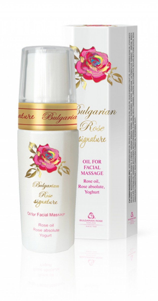 Το λάδι μασάζ προσώπου της Bulgarian Rose Karlovo από τη σειρά καλλυντικών Signature έχει ισχυρές διεισδυτικές ιδιότητες, χάρη στον συνδυασμό φυτικών ελαίων γλυκεριδίων και πλούσιας σύνθεσης λιπαρού οξέος στο πρόσωπο του ελαίου σταφυλιού, αμυγδαλέλαιο, ελαιόλαδο και λάδι argan. Το λάδι μασάζ προσώπου είναι επίσης εμπλουτισμένο με βουλγαρικό λάδι τριαντάφυλλου, απόλυτο τριαντάφυλλο και γιαούρτι. Το λάδι προορίζεται για καλλυντικά μασάζ προσώπου και λαιμού. Έχει ισχυρές μαλακτικές και θρεπτικές ιδιότητες στο δέρμα.