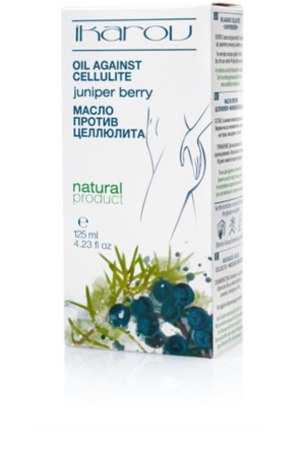 Το λάδι μασάζ της Ikarov κατά της κυτταρίτιδας με εκχυλίσματα αρκεύθου περιέχει καλά επιλεγμένα συστατικά και απορροφάται αμέσως. Το δέρμα γίνεται μαλακό και ελαστικό. Ο συνδυασμός σησαμέλαιο και σταφυλιού παρέχει ισορροπία μονο- και πολυακόρεστων λιπαρών οξέων. Εμπλουτισμένο με αιθέρια έλαια πεύκου, λεμονιού, αρκεύθου και λεβάντας Έχει ένα ευχάριστο άρωμα και δίνει μια αίσθηση χαλάρωσης και αναψυχής.