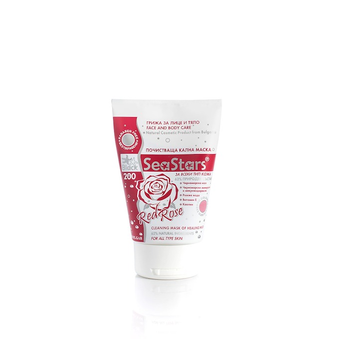 Η μάσκα καθαρισμού λάσπης από τη σειρά Red Rose Sea Stars καθαρίζει βαθιά το δέρμα του προσώπου και του σώματος και αποκαθιστά τη φυσική του λάμψη. Ο συνδυασμός θεραπευτικής λάσπης από λίμνες αλατιού της Μαύρης Θάλασσας, σταθεροποιημένη λευκοχλωρίδα και λευκός πηλός αναζωογονεί, ενυδατώνει και αναζωογονεί το δέρμα, ενώ το αντισηπτικό και αντιφλεγμονώδες αποτέλεσμα του ροδαλού νερού το προστατεύει από κηλίδες και ρωγμές. Το δέρμα τρέφεται ορατά, αναζωογονείται και τονίζεται.
