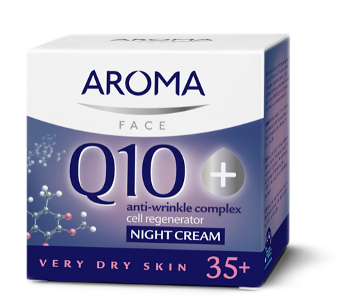 Η κρέμα νύχτας για πολύ ξηρό δέρμα από την καλλυντική γραμμή Aroma Q10 + περιέχει ισχυρό συνδυασμό δραστικών συστατικών, όπως το συνένζυμο Q10, η L-καρνιτίνη και το Energisome ™, που διεγείρουν την αναγέννηση των κυττάρων και ενισχύουν τον κυτταρικό μεταβολισμό. Το δέρμα αποκαθίσταται το βράδυ και φρέσκο και λαμπερό το πρωί. Κατάλληλο για ώριμο δέρμα άνω των 35 ετών.