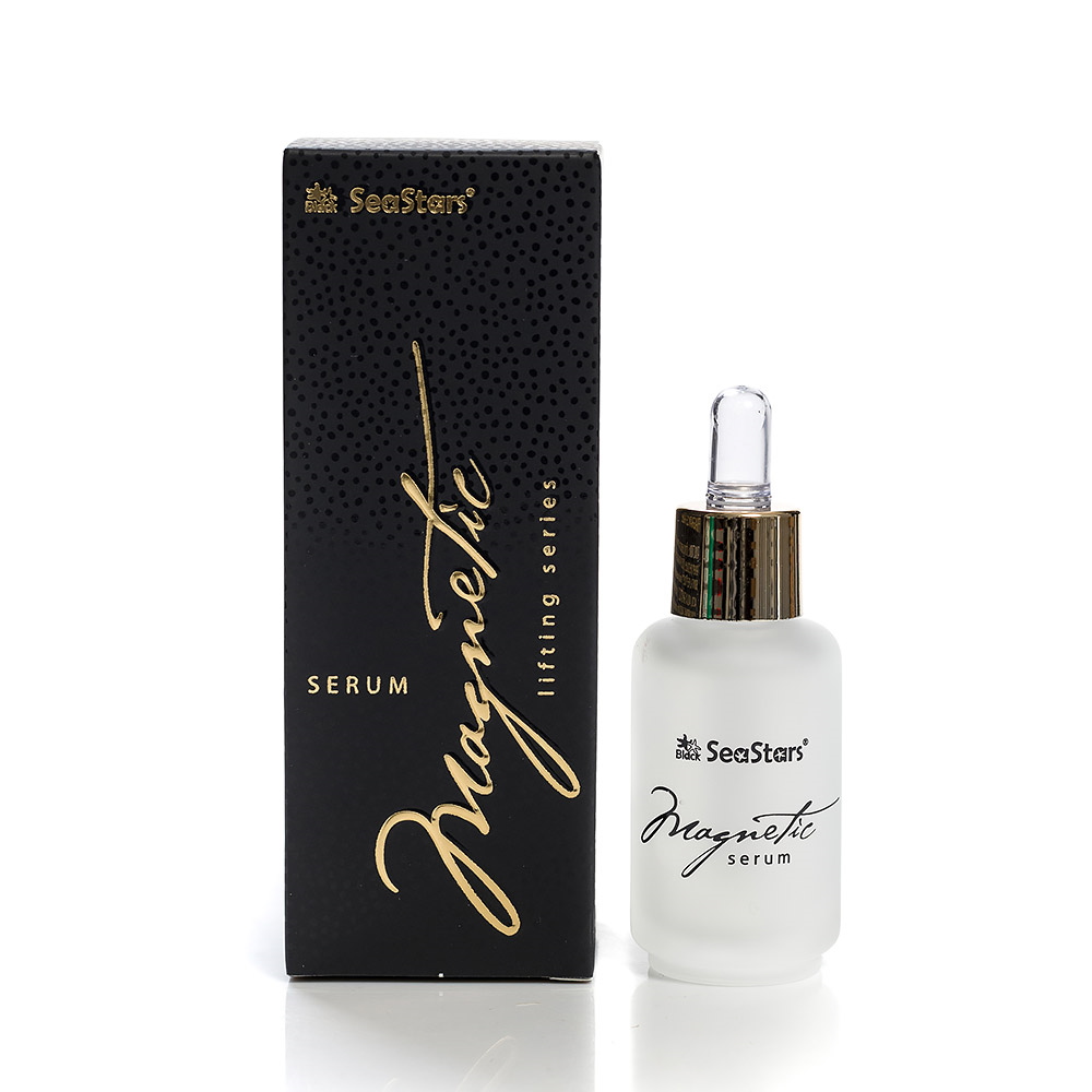Ο Magnetic ορός με ανυψωτικό αποτέλεσμα από το Black Sea Stars αντιμετωπίζει αποτελεσματικά τις ρυτίδες στο πρόσωπο Περιέχει συνδυασμό από 7 πεπτίδια. Το AN50 ANTIAGING ™ χρησιμοποιεί ένα καλλυντικό «drone» για τη μεταφορά πεπτιδίων στο δέρμα διεγείροντας τη σύνθεση της ελαστίνης και του κολλαγόνου. Το συστατικό RENAISSANCE ™ περιέχει πεπτίδια που βοηθούν την αναγέννηση και βελτιώνουν την ελαστικότητα του δέρματος. Το BONT-L PEPTIDE ™ έχει μια επίδραση τύπου botox στις ρυτίδες. Το προστιθέμενο υαλουρονικό οξύ λειαίνει τις ρυτίδες και συσφίγγει το δέρμα αποτρέποντάς το από τη γήρανση. Η μακροχρόνια ενυδάτωση του προσώπου εξασφαλίζεται από το AQUA SHUTTLE ™ που αποτρέπει την εξάτμιση του νερού.