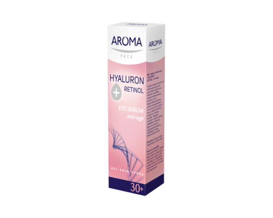 Ο ορός ματιών από τη σειρά καλλυντικών Hyaluron + Retinol της Aroma προσφέρει μια ολοκληρωμένη φροντίδα για την ευαίσθητη περιοχή γύρω από τα μάτια. Επιταχύνει τη σύνθεση του κολλαγόνου και της ελαστίνης και εξαλείφει τα “πόδια του κοράκι”, τους μαύρους κύκλους, τους σάκους κάτω από τα μάτια και τα διογκωμένα βλέφαρα. Προστατεύει από τις επιβλαβείς επιδράσεις των ελεύθερων ριζών και διατηρεί το δέρμα γύρω από τα μάτια ελαστικό και ελαστικό. Κατάλληλο για γυναίκες άνω των 30 ετών, ανεξάρτητα από τον τύπο του δέρματος τους.