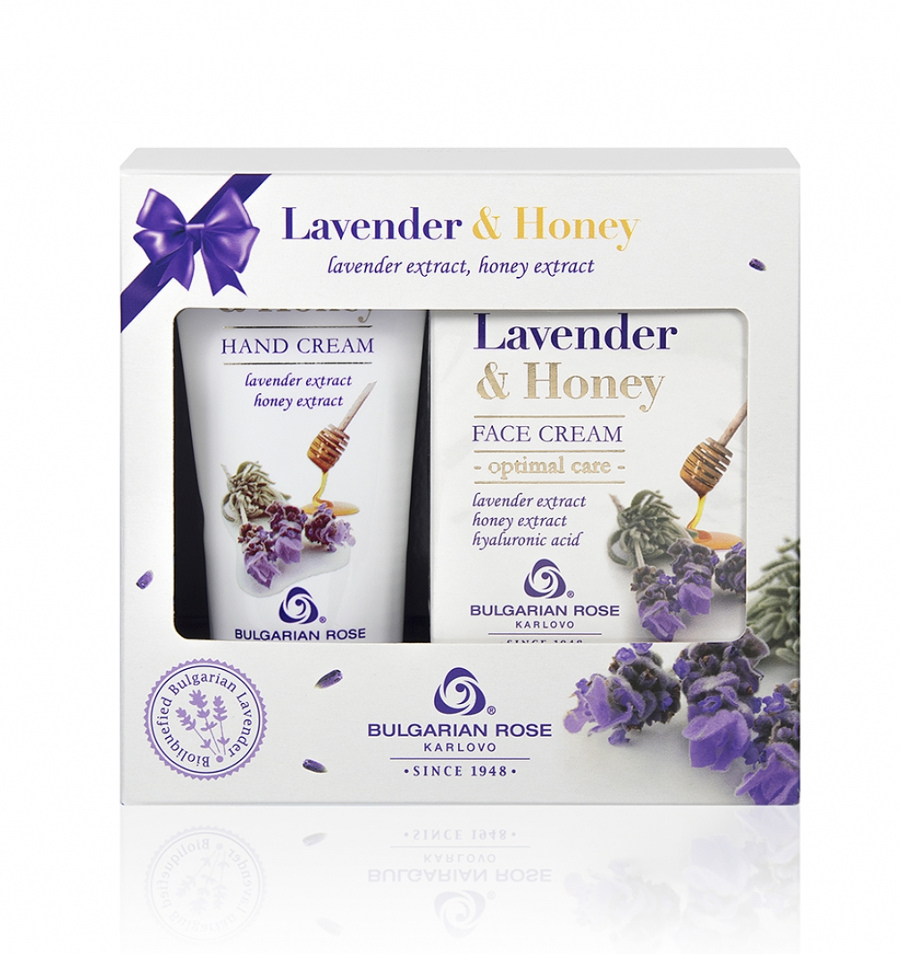 Το σετ δώρων από τη σειρά Lavender and Honey του  Bulgarian Rose Karlovo περιλαμβάνει δύο εξαιρετικά θρεπτικά προϊόντα για το δέρμα του προσώπου και των χεριών: