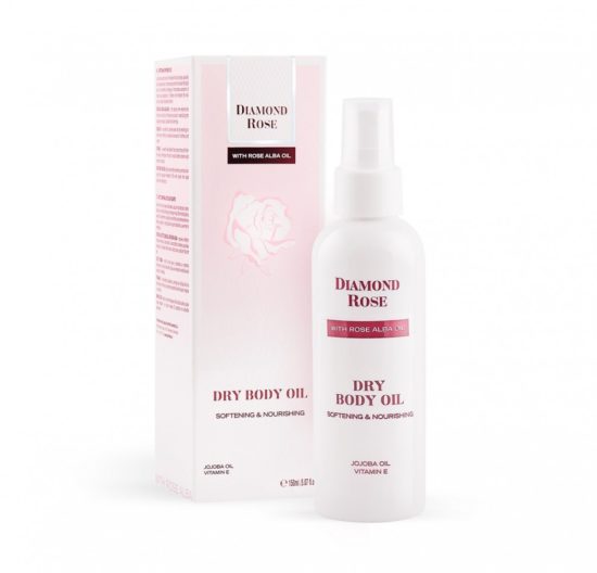 Το μαλακτικό dry body oil από τη σειρά καλλυντικών Diamond Rose by Biofresh περιέχει πολυτελή συστατικά, πλούσια σε θρεπτικά συστατικά.Το rosa alba αποκαθιστά τη σφριγηλότητα και την ελαστικότητα του δέρματος.Το ξηρό λάδι του σώματος εμπλουτίζεται περαιτέρω με έλαιο jojoba και βιταμίνη Ε, τα οποία αποκαθιστούν και προστατεύουν το δέρμα από τις βλαβερές συνέπειες των ελεύθερων ριζών.Έχει αντιοξειδωτικές ιδιότητες και διατηρεί το δέρμα καλά θρεπτικό όλη την ημέρα.
