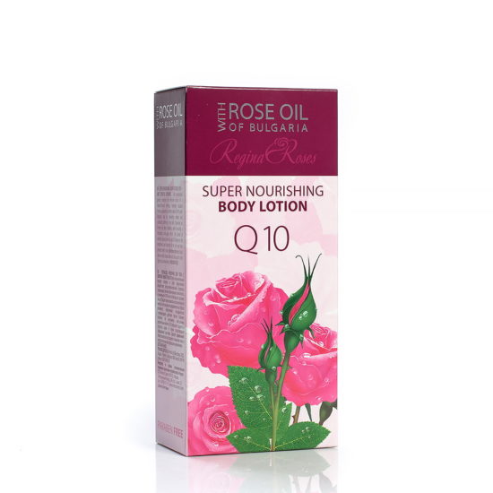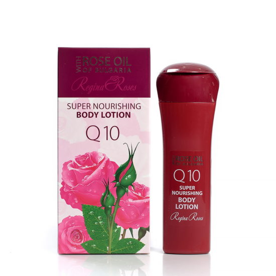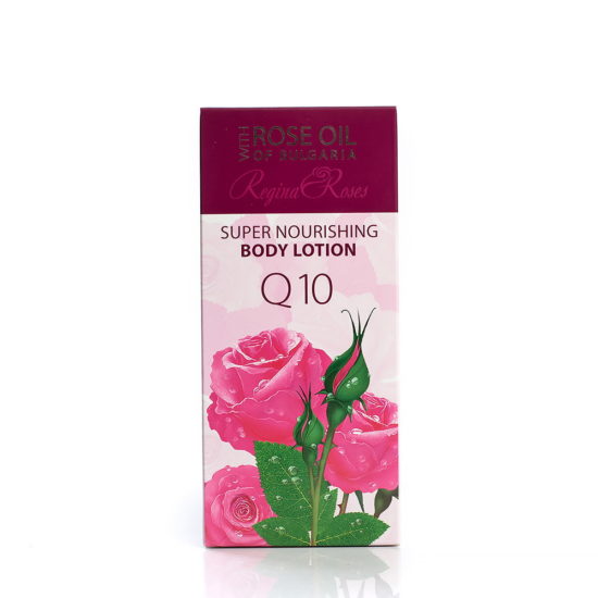 Η εξαιρετικά θρεπτική λοσιόν σώματος της Regina Floris περιέχει ένα σύμπλεγμα ενυδατικών συστατικών και 100% αγνό βουλγαρικό λάδι τριαντάφυλλου, το οποίο διεισδύει βαθιά στο δέρμα και ενυδατώνει και μαλακώνει αμέσως το σώμα. Η λοσιόν περιέχει συνένζυμο Q10, το οποίο είναι γνωστό για την αντιγηραντική του δράση. Το συνένζυμο αυξάνει την απαλότητα και την ελαστικότητα του δέρματος και αποτρέπει το σχηματισμό ραγάδων. Η λοσιόν είναι κατάλληλη για όλους τους τύπους δέρματος, συμπεριλαμβανομένων των ξηρών και ευαίσθητων.