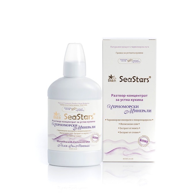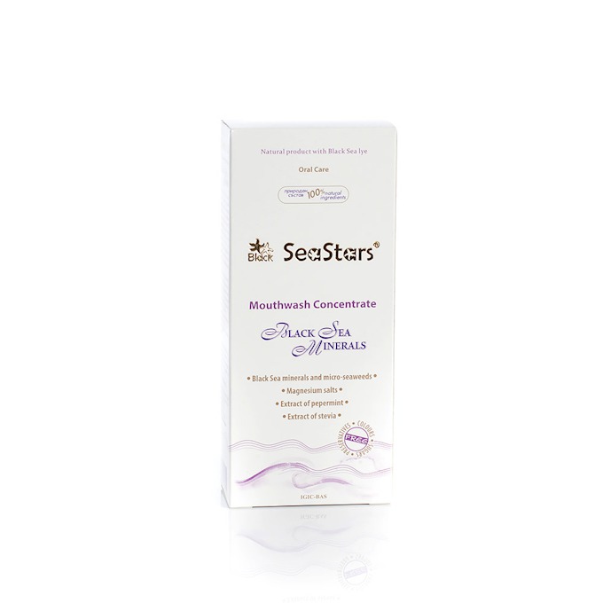 Το συμπύκνωμα διαλύματος για στοματική φροντίδα από τη σειρά Black Sea Minerals της Sea Stars φροντίζει απαλά τον ευαίσθητο στοματικό βλεννογόνο και τα ούλα. Η σύνθεση σταθεροποιημένου διαλύματος για τη σίκαλη της Μαύρης Θάλασσας και εκχυλίσματα μέντας και στεβίας ορυκτώνει, θεραπεύει και προστατεύει τα ούλα από φλεγμονή και αιμορραγία. Βελτιώνει την αναγέννηση των κυττάρων και την στοματική υγιεινή.