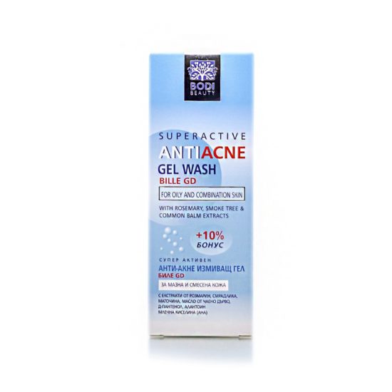 Το τζελ πλύσης προσώπου της Bodi Beauty AntiAcne (Bile-GD) διατηρεί τη φυσική ισορροπία υδρο-λιπιδίων του δέρματος, αποκαθιστά τα επίπεδα του pH και την κανονική κυτταρική δραστηριότητα. Μειώνει την έκκριση σμήγματος, τονώνει το δέρμα και έχει αντιβακτηριακές ιδιότητες. Χάρη στα φυτικά εκχυλίσματα δενδρολίβανου, σουμάκ, βάλσαμου λεμονιού και τσαγιού, το δέρμα είναι εμφανώς καθαρότερο, απαλότερο και καταπραϋντικό.