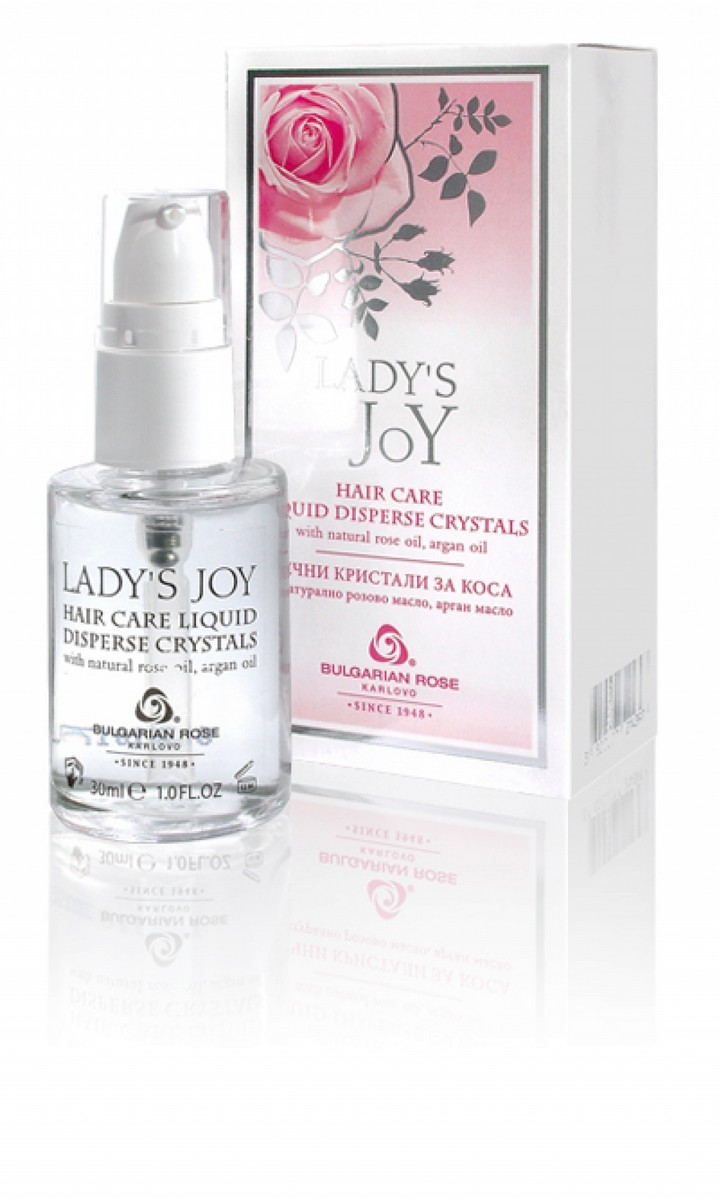 Οι υγροί κρύσταλλοι της Bulgarian Rose Karlovo για τα μαλλιά Lady’s Joy έχουν σημαντική λειτουργία για την προστασία από τις υψηλές θερμοκρασίες, τις επιβλαβείς ακτίνες UV. Ταυτόχρονα τρέφουν τα μαλλιά και αποτρέπουν τα σπασμένα άκρα. Χρησιμοποιήστε το για να αποκτήσετε μεταξένια απαλότητα και λάμψη χάρη στις βαθιές διεισδυτικές ιδιότητες του τριαντάφυλλου και του αργινέλαιου. Φροντίστε την υγεία των μαλλιών σας, ενώ βουτάτε στο απαλό άρωμα των τριαντάφυλλων.